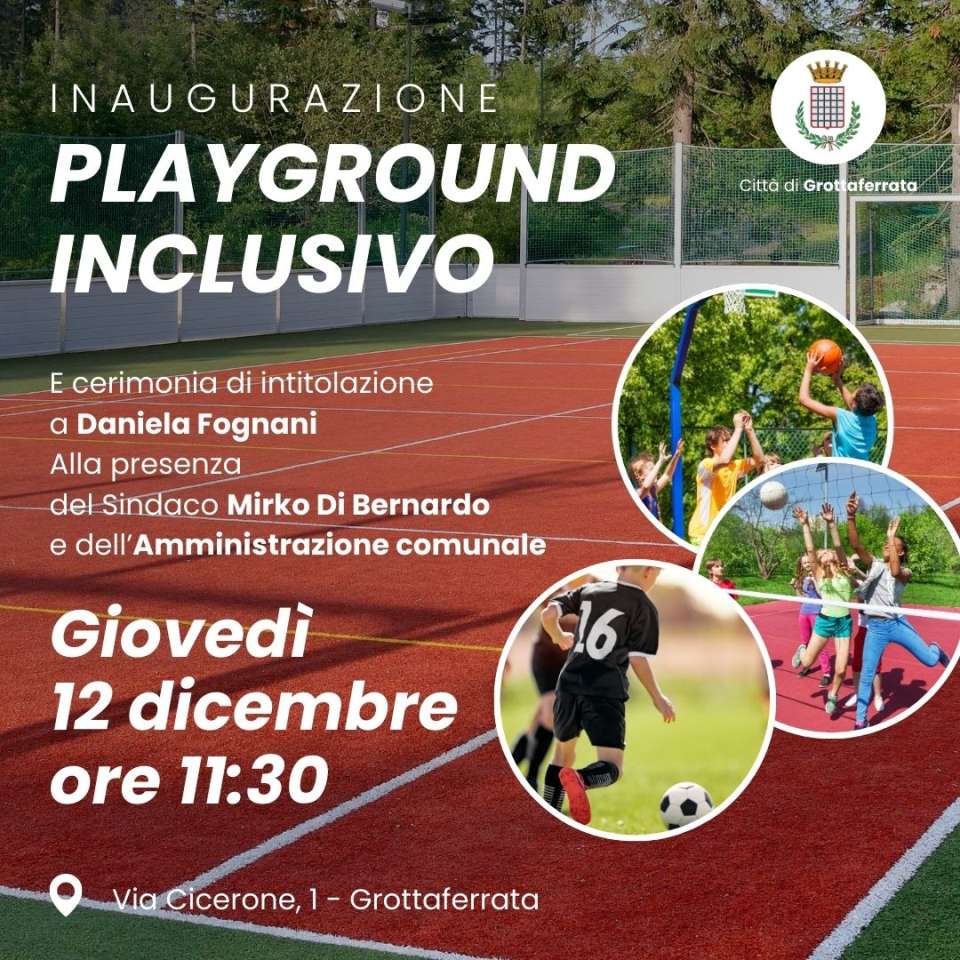Un nuovo spazio di sport e aggregazione nel cuore di Grottaferrata, a servizio delle scuole e di tutti i giovani del territorio. Ad appena un anno dall’inizio dei lavori, nasce a via Cicerone il nuovo Playground Inclusivo, con due campi polifunzionali per Basket, Pallavolo e Calcetto, spalti per assistere alle partite, un’area cani per i nostri amici a quattro zampe, l’area fitness inclusiva e l’area parcheggio gratuita per le automobili, fondamentale per garantire più posteggi ai cittadini nel periodo natalizio.