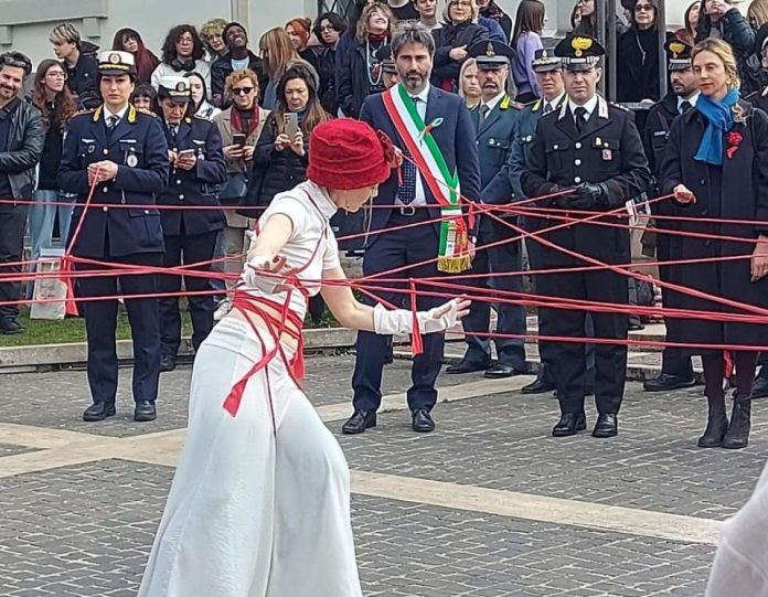 L’intera iniziativa si è svolta all’insegna dell’arte. In apertura, Martina Pucci e Daniele Parisi, studenti del Liceo Artistico San Giuseppe, hanno declamato, circondati da altri compagni e insegnanti, la poesia dal titolo “La nostra lotta”. Al termine dell’evento Corinna Torreggiani si è esibita in una performance di teatro-danza dal titolo “La sottile linea rossa”, accompagnata dalla voce di Daniela Di Renzo, dal sax soprano Francesco Consaga e da Ermanno Dodaro al contrabbasso. Durante l’emozionante esibizione, l’artista ha coinvolto alcuni partecipanti – tra cui il Sindaco e altri membri dell’Amministrazione – invitandoli a reggere ognuno il capo di un lungo filo rosso.