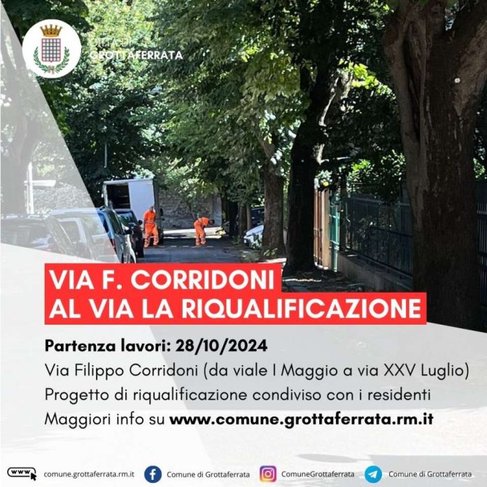 Grottaferrata – Via Filippo Corridoni: lunedì 28 ottobre al via il progetto di riqualificazione