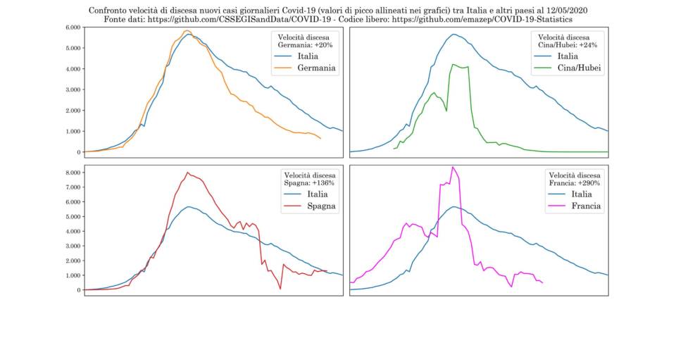 Non servono grandi spiegazioni. La bravura di un Paese nella lotta al virus, come abbiamo detto cento volte, sta non tanto nel contenimento dei picchi quanto nella velocità di discesa della curva epidemiologica. Ecco. Credo che i grafici, con legenda annessa, non abbiano bisogno di spiegazioni. E come dice Emanuele, la peggiore velocità di discesa della curva nel mondo è stata pagata con Il più lungo lockdown nel mondo che ha causato i più gravi danni economici nel mondo. Oltre ad un tasso di letalità da primato insieme a Belgio, Francia e Regno Unito.