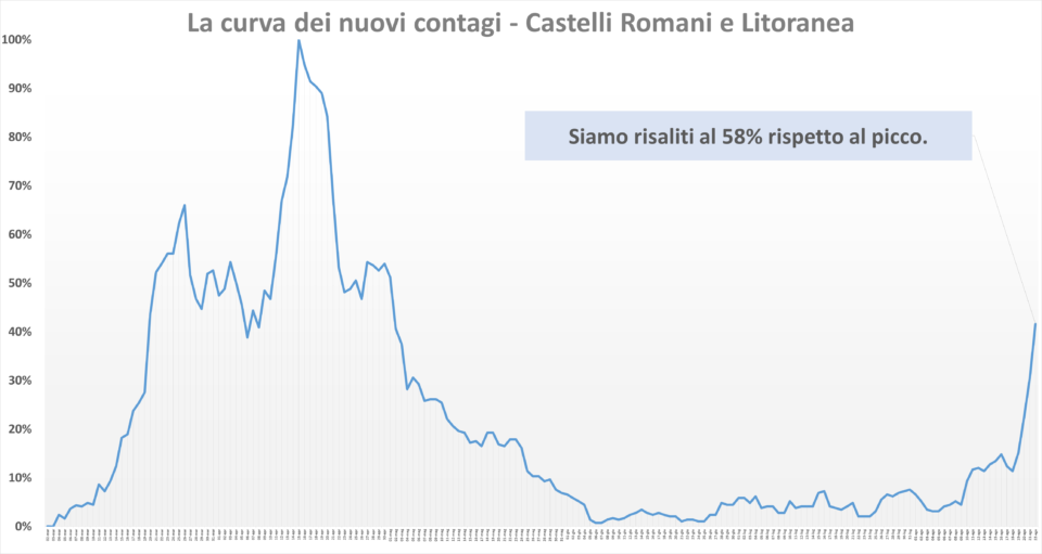 Rispetto al picco la curva dei nuovi contagi sta pericolosamente risalendo (è risalita al 69%).