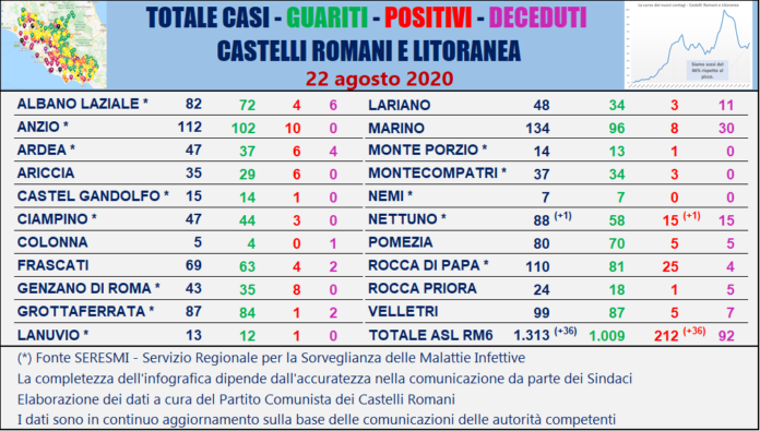 I Comunisti "clamorosa impennata della curva dei contagi. Altri 36 nuovi casi Ai Castelli Romani e Litoranea sabato 22 agosto