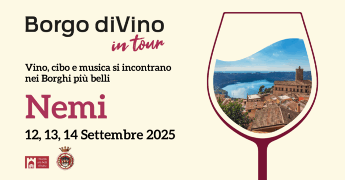 Si terrà a Nemi, terrazza panoramica nel cuore dei Castelli Romani, il diciassettesimo dei ventidue appuntamenti di Borgo diVino in tour 2025, il ciclo di eventi dedicato alle eccellenze enologiche e gastronomiche locali e nazionali nel circuito de “I Borghi più belli d’Italia” (un borgo per regione per un totale di 20 tappe) che ha visto quest’anno l’aggiunta di 2 tappe estere: San Marino, Borgo Ospite Internazionale dell’Associazione “I Borghi più belli d’Italia”, e Le Castellet, Borgo certificato nell’omologa Associazione francese “Les Plus Beaux Villages de France”.