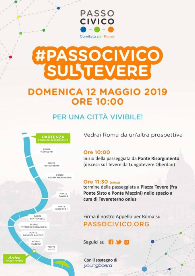 Alle 10,00 del 12 maggio sotto Ponte Risorgimento (accesso da Lungotevere Oberdan) comincia l’avventura di “Passo Civico”, Comitato civico per Roma. Un gruppo di cittadini sfilerà lungo il fiume per dire basta alla decadenza in cui versa la capitale d’Italia e