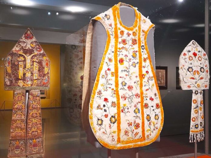 Sculture, dipinti, mappe e oggetti (anche etnici, fra cui la splendida maschera di Yacatecuhtli) e alcuni straordinari paramenti liturgici, ricamati con piume di uccelli, (come la Mitra di San Carlo Borromeo) riportano di potenti, di Santi, di artisti e di funzionari imperiali, il cui sguardo apre alla complessità delle interazioni transculturali. Già 400 anni fa, infatti, la Capitale era tutt’altro che isolata: sì cuore spirituale della cristianità, ma pure bivio vibrante di lingue e visioni del mondo; un palco su cui i viaggiatori riferivano – e ascoltavano – storie…
