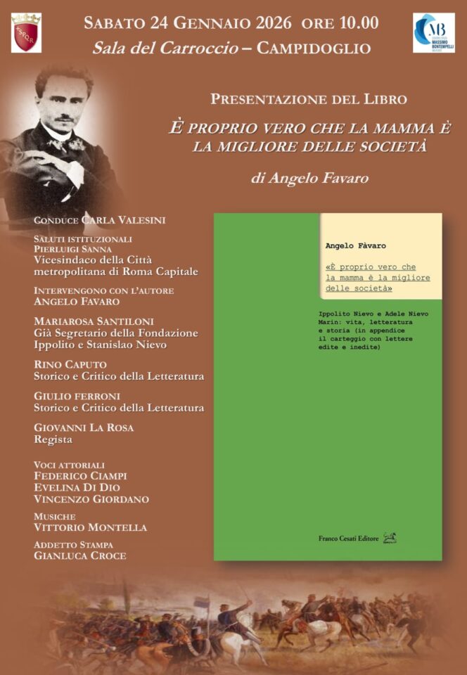 Il Centro Studi “Massimo Bontempelli” presenta l’evento “Il mare di Adele – La madre di Ippolito Nievo”, in programma il 24 gennaio 2026 a Roma, dalle 9.00 alle 14.00, presso la Sala del Carroccio del Campidoglio.