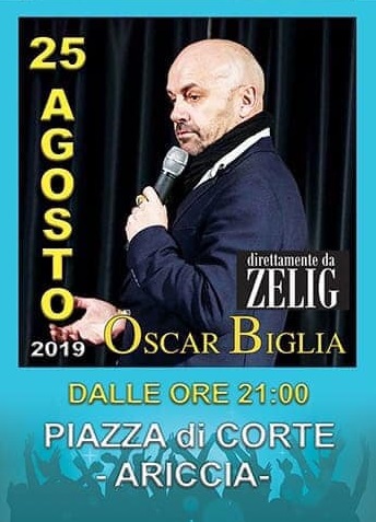 Il comico di Zelig Oscar Biglia in piazza di Corte domenica 25 agosto a conclusione di, un’estate di spettacoli gratuiti ad Ariccia