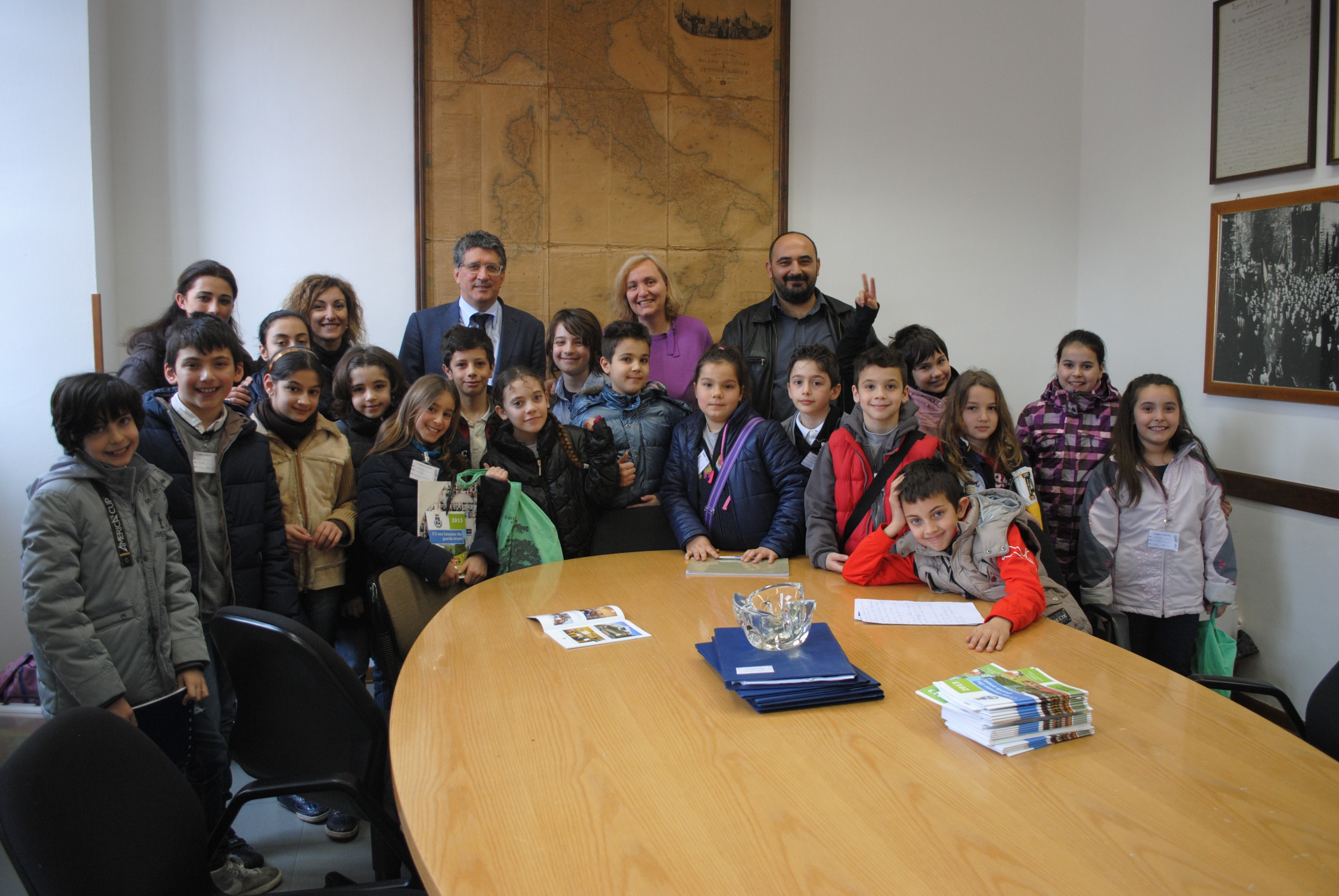 CRONACA – Si è svolta la visita dei bambini consiglieri di Genzano al palazzo municipale. I diciotto studenti, che frequentano le classi quarte e quinte delle scuole elementari della città, accompagnati dalle loro insegnanti, hanno avuto modo di confrontarsi con il Sindaco Flavio Gabbarini, la Giunta e diversi uffici comunali, vedendo da vicino come si svolge il lavoro all’interno degli uffici pubblici.