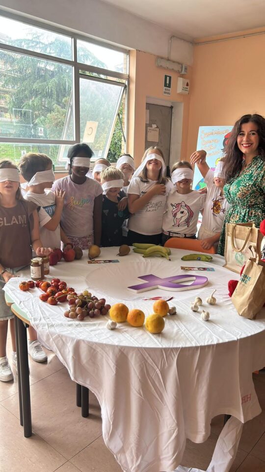 I giovanissimi studenti infatti sono stati protagonisti di un laboratorio che ha messo al centro i 5 sensi come strumenti di scoperta e meraviglia. Attraverso giochi didattici e momenti di sperimentazione, i piccoli hanno imparato quanto sia importante gustare la Dieta Mediterranea con tutti i sensi, assaporandone colori, profumi, consistenze, suoni e sapori. Un momento particolarmente suggestivo è stato vivere questa esperienza al buio, dove l’attenzione e la sensibilità di ciascuno si sono amplificate, trasformando ogni boccone in un viaggio emozionante. Dopo il laboratorio, i bambini hanno condiviso una merenda insieme, raccontando a loro modo il proprio “gusto del cuore”: parole semplici e autentiche che hanno commosso e fatto sorridere, regalando momenti di grande intensità, leggerezza e divertimento.