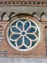 Facciata principale della Basilica Lato nord della Basilica Il rosone Il campanileLa facciata della Basilica di Santa Maria di Grottaferrata è stata ripristinata nelle forme originarie, con il rosone e le finestre in marmo traforato, gli archetti ciechi in stile gotico e le cornici in laterizio, che proseguono la decorazione dei fianchi.
