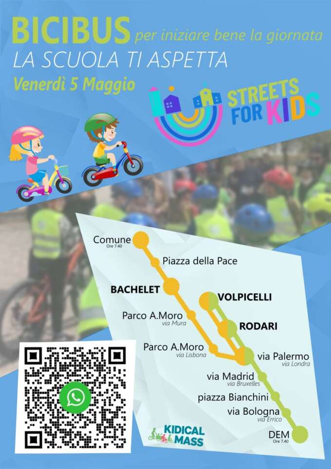 In occasione dell’evento Street for kids di primavera (https://italy.cleancitiescampaign.org/streets-for-kids-spring-2023/), per VENERDI’ 5 MAGGIO alcuni genitori delle scuole di Ciampino stanno organizzando il primo  BiciBus di Ciampino.