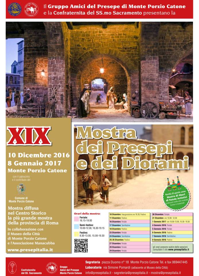 E ancora dal 10 dicembre 2016 all’8 gennaio 2017 “XIX Mostra dei Presepi e dei Diorami”