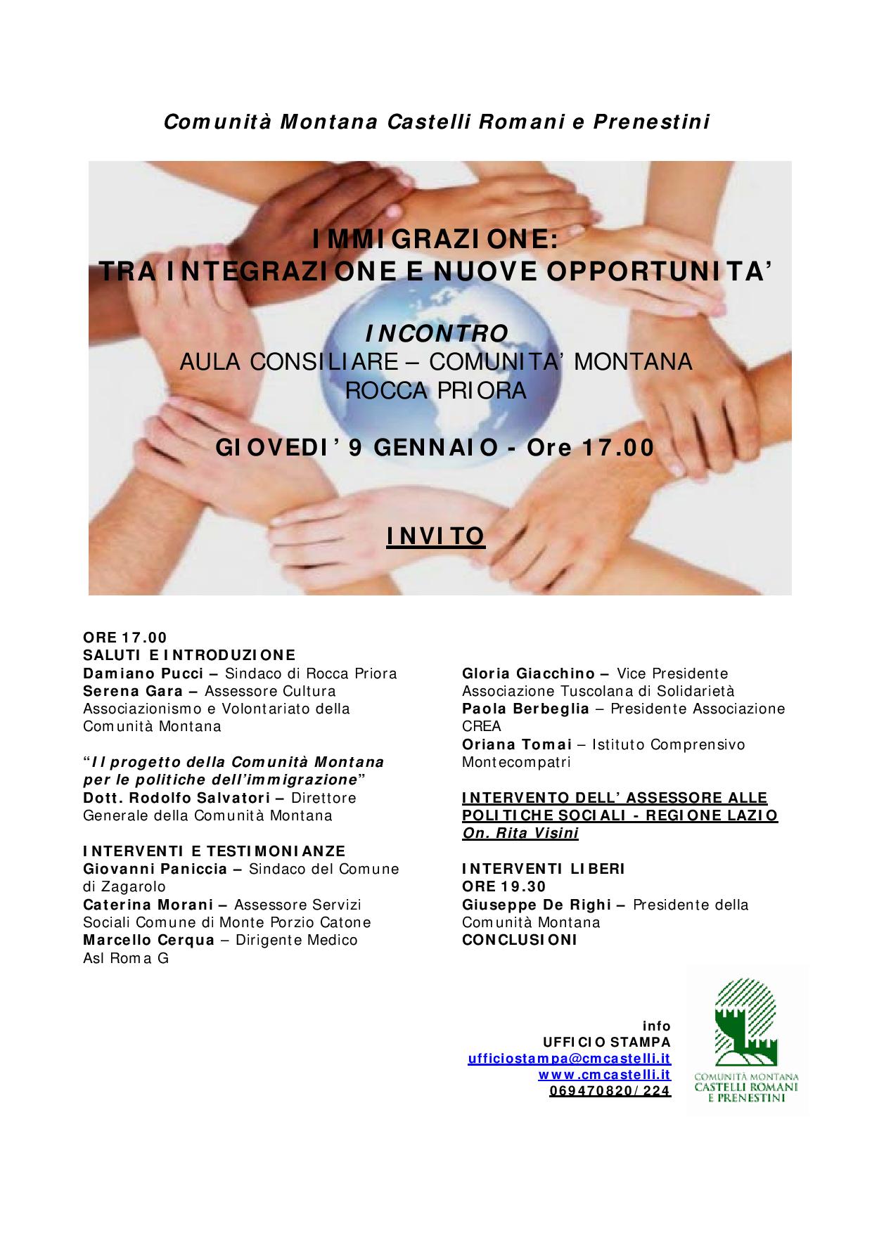 Convegno su immigrazione alla comunità montana il 9 gennaio 2013
