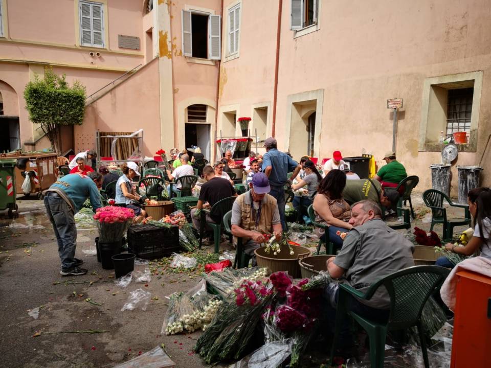 marzo: scelta dei bozzetti che saranno realizzati aprile: conteggio di fiori ed essenze vegetali occorrenti per i quadri infiorati maggio: apertura del cantiere dell’Infiorata