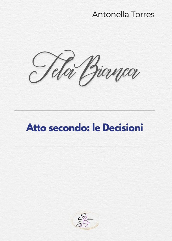 Selezionato per Casa Sanremo Writers 2026, Tela bianca. Atto secondo: le Decisioni di Antonella Torres intreccia narrazione personale, esercizi e micro-storie ispirazionali. L’obiettivo è trasformare l’“automatico” delle scelte in attenzione vigile: dalla pausa di consapevolezza alla mappa delle emozioni, fino alla visualizzazione degli obiettivi. Editore: SBS Edizioni. Anno: 2025. Prezzo: € 15.