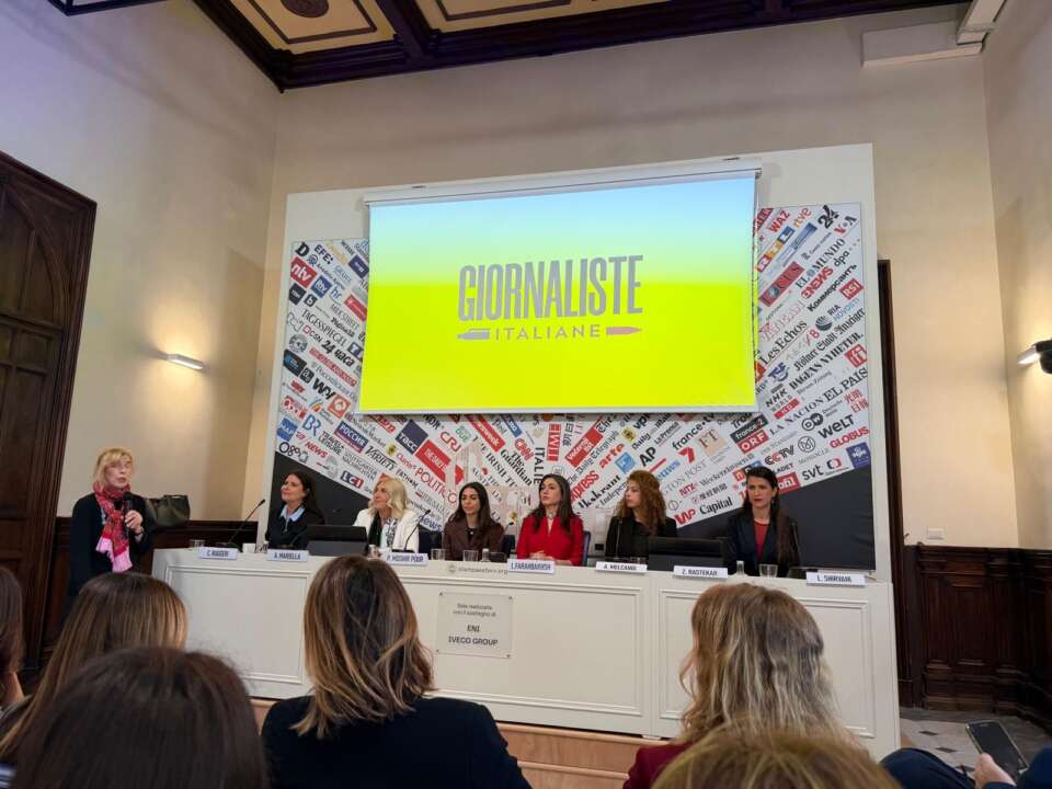 «Se volete parlare dell’Iran, fate parlare il popolo iraniano». Con queste parole si è aperto questa mattina, di fronte a una sala gremita, il convegno “Libertà negata: il coraggio delle donne iraniane”, promosso e organizzato dall’Associazione Giornaliste Italiane presso la sede dell’Associazione della Stampa Estera a Roma.