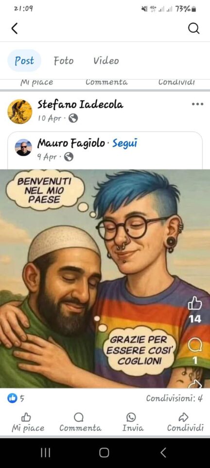Scorrendo le condivisioni sul profilo del neo assessore Iadecola sorge qualche dubbio sulla sua totale aderenza culturale al verso impresso dalla sua maggioranza, per cui poniamo a lui qualche domanda: