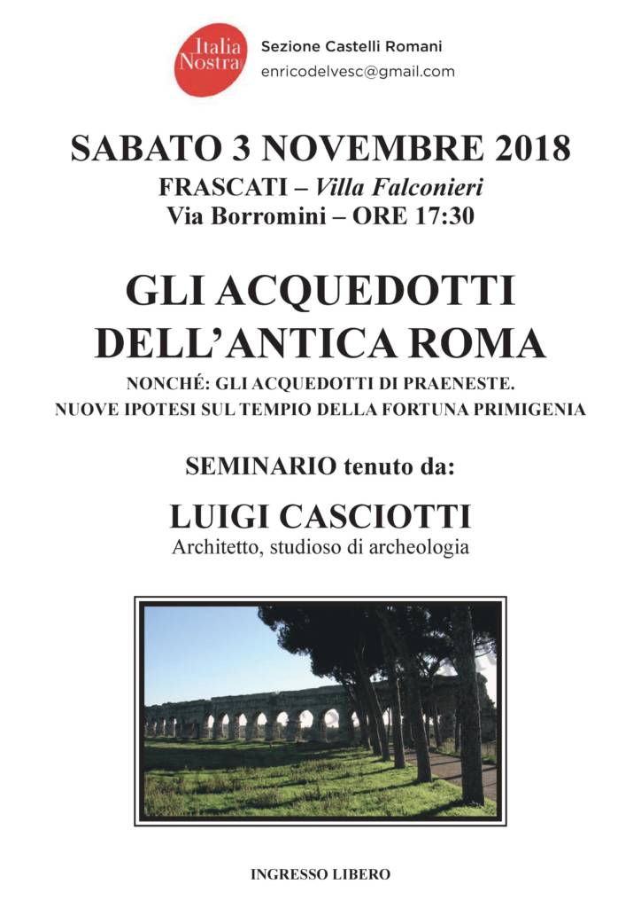 “Interessante appuntamento di ITALIA NOSTRA Castelli Romani, sabato 3 novembre 2018 presso Villa Falconieri a Frascati – l’associazione introduce così l’appuntamento di sabato prossimo.