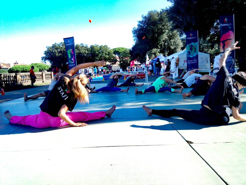 L’Asd Judo Frascati nel tempo ha sempre più ampliato la sua offerta sportiva: non solo la tradizionale disciplina “principe” del judo, ma anche ginnastica ritmica e artistica, dove ha ottenuto ottimi successi agonistici, e varie attività del mondo del fitness e delle arti marziali. La consueta partecipazione alla “Festa dello Sport”, organizzata come ogni anno dal Comune di Frascati presso l’incantevole scenario di Villa Torlonia, ha messo in mostra tutto le attività che l’Asd Judo Frascati offre ai suoi tesserati. Si è cominciato al mattino con una dimostrazione di olit (un’attività olistica che unisce elementi di tai chi, yoga e pilates) presentata dalle insegnanti Valeria Bertoni e Chiara Fanasca, poi a seguire c’è stata una breve ma intensa lezione di cross training (settore curato da Alessandro Marchionne, Raffaella De Maria ed Eleonora Lizzio i cui corsi si svolgono presso la sede della palestra comunale in via Conti di Tuscolo). Intorno alle ore 11.30 si è tenuta la lezione di judo che ha coinvolto diversi tesserati (dai più piccoli del turno di attività neuromotoria a quelli del preagonismo e dell’agonismo) coordinati dai maestri Nicola Moraci e Daniele Mattozzi. Successivamente è stata la volta della ginnastica ritmica le cui allieve del corso agonistico si sono esibite con gli esercizi portati speso nella gare federali e promozionali, a seguire una lezione di ginnastica ritmica coordinata dalle allenatrici Lavinia Freda e Francesca Vichi a cui hanno partecipato molte bambine presenti in Villa Torlonia oltre al gruppo societario (così come era accaduto in precedenza con la lezione di judo). Prima della pausa pranzo c’è stato di nuovo uno spazio dedicato al settore del fitness con le divertenti coreografie della zumba guidate da Oksana Martynova, seguita da alcune allieve dei suoi corsi che si svolgono presso la sede del Tusculum Sport Center. Nel pomeriggio, dopo le lezioni dimostrative di kung fu sanda col maestro Giampaolo Rabboni e di brazilian jiu jitsu col maestro Daniele Proietti, c’è stato il gran finale con la ginnastica artistica (alla presenza dell’allenatrice Giorgia Coni) che ha mostrato ai presenti l’utilizzo dell’air track, una sorta di tappeto gonfiabile utile per la parte acrobatica e più spettacolare della disciplina. In conclusione è stata la volta dell’area danza del Tusculum coordinata dal maestro David Coni che ha dato un assaggio dello spettacolo dal titolo “Five elements” che verrà portato in scena da lui e da molti dei suoi allievi domenica 21 ottobre alle ore 18 al teatro di Capocroce.