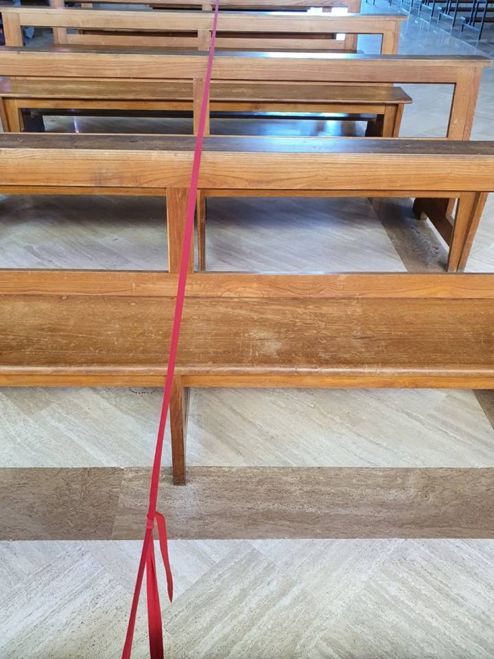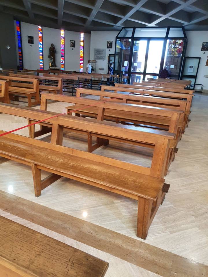 L'organizzazione del distanziamento nella Chiesa di Cocciano domenica 24 maggio. Le immagini da San Giuseppe Lavoratori nelle periferia di Frascati