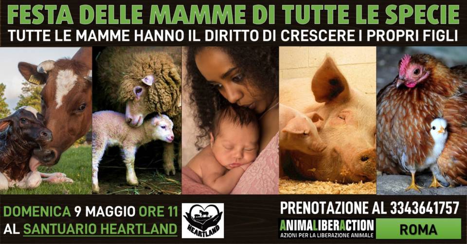 L’appuntamento quindi è per domenica 9 maggio al Santuario HeartLand, un rifugio per animali salvati dallo sfruttamento dell’uomo situato in Via Salaria Nuova km 45.2, Nerola (ROMA)Avremo la possibilità di guardare negli occhi le mamme che non hanno mai avuto la possibilità di crescere i loro figli ma che da quando vivono al Santuario, hanno ritrovato la propria libertà e la propria dignità.