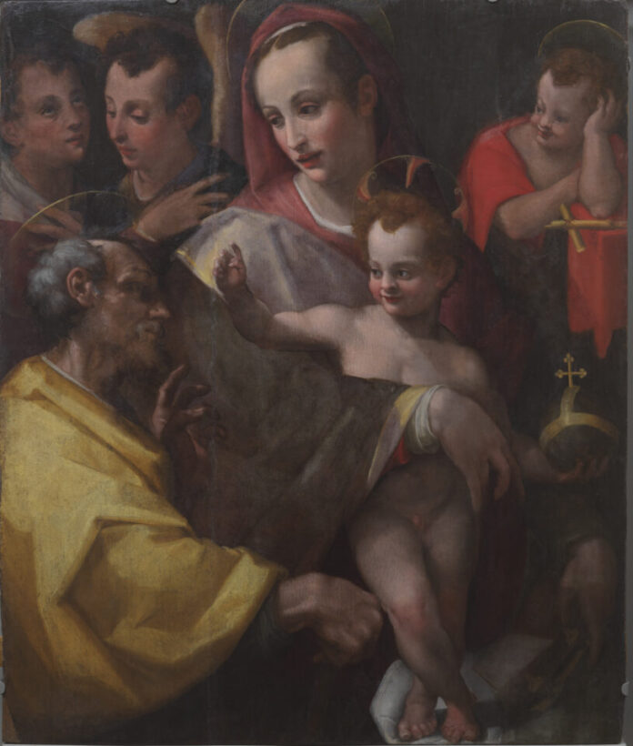 - “Sacra Famiglia con San Giovannino” di Daniele da Volterra – Tavola del 1540, dipinta dal più grande allievo di Michelangelo Buonarroti, realizzata poco dopo la conclusione del Giudizio Universale nella Cappella Sistina.