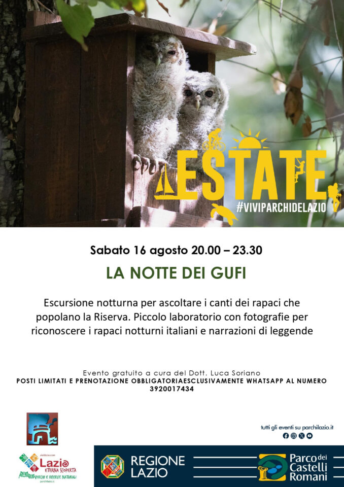 L’iniziativa gratuita, sarà arricchita da un piccolo laboratorio con fotografie per riconoscere i rapaci notturni italiani e dalla narrazione di leggende. Tutti i dettagli sono reperibili nella locandina allegata.