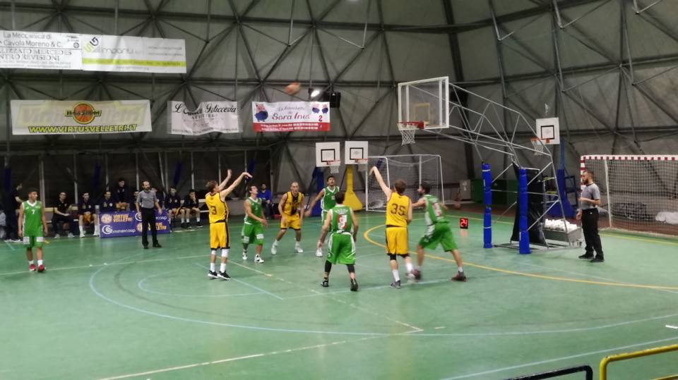 Torna alla vittoria la Virtus dopo lo stop esterno della settimana scorsa e lo fa trovando 2 punti contro un avversario di livello come la Serapo Gaeta. Partita equilibrata conclusasi positivamente per i colori veliterni che vincono affidandosisi soprattutto all’attacco. Inizio positivo per i gialloblu che partono 4 a 0 con una gran schiacciata di Borro in contropiede. Gaeta non che non cede e riapre subito con Richotti (8 punti per lui nel primo quarto). Partita vivace con entrambe le difese un po troppo permessive e medie alte al tiro per entrambe le squadre. Virtus che chiude avanti il quarto per 25 a 21. Non cambia la storia nel secondo parziale, Gaeta trova la via del canestro anche da tre punti con Norbedo e Scampone mentre la Virtus fa male agli ospiti con Di Biase e Puleo (autore di bellissima schiacciata a difesa schierata). Si va al riposo sul punteggio di parità dopo che entrambi i coach hanno tentato invano la carta della difesa a zona. Nel terzo periodo la Virtus riparte meglio e trova l’allungo decisivo. Borro e Miele trovano i canestri importanti e i gialloblu toccano il massimo vantaggio sul +8. Gaeta si affida ancora ai suoi esterni e al contropiede per rientrare ma si arrende al 69 al 60 della terza sirena propiziato da un bel canestro di Sica allo scadere. Nell’ultimo quarto la partita è accesa con Gaeta che viaggia sempre a 3-4 punti di svantaggio. Decisive le uscite per falli dei fratelli Valente con la Virtus che domina cosi tutti i rimbalzi. Velletri riesce a gestire il punteggio negli ultimi minuti e a portare a casa la partita nonostante i tentativi di rimonta della squadra ospite. Prossimo impegno per i gialloblu in trasferta a Cassino, squadra molto quotata e pericolosa.