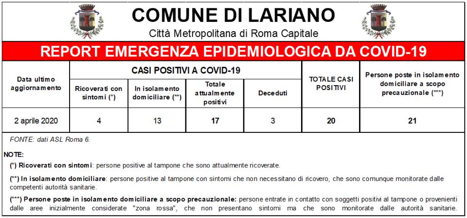 “AGGIORNAMENTO SITUAZIONE EPIDEMIOLOGICA LARIANO