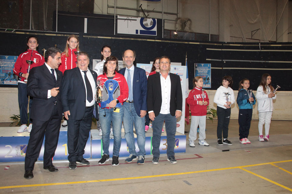 Giovanna Trillini premiata come maestra della vincitrice nella categoria bambine fioretto (photoexpresspvs)