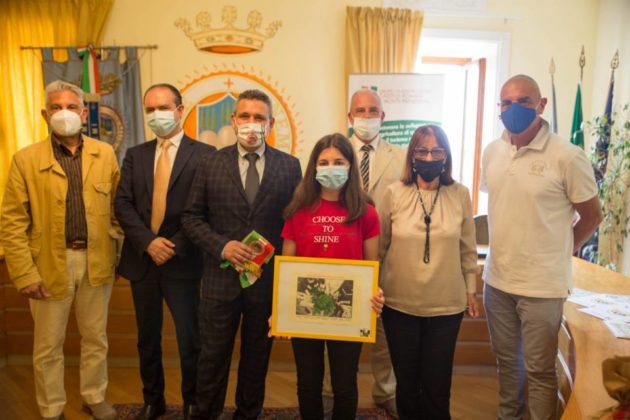“Giovedì 24 giugno presso la sala consiliare del comune di Nemi la giovane studentessa Odesa Dollomaja è stata premiata per il suo disegno al termine del progetto “Arte, cibo e territorio” promosso dal GAL Castelli Romani e Monti Prenestini. Presenti alla cerimonia il vicesindaco di Città Metropolitana Teresa Zotta, il sindaco di Nemi Alberto Bertucci e il presidente del GAL Stefano Bertuzzi. Presente anche Giovanni Libanori, consigliere comunale del comune di Nemi e consigliere di Città Metropolitana. Non poteva mancare la giovanissima Odesa che è risultata la studentessa più brava della sua città nel rappresentare il suo prodotto tipico – le fragoline di Nemi – attraverso un disegno che ha favorevolmente impressionato la giuria. Ad accompagnarla, oltre alla madre, le due insegnanti dell’istituto comprensivo “Marianna Dionigi” che hanno seguito il progetto.
