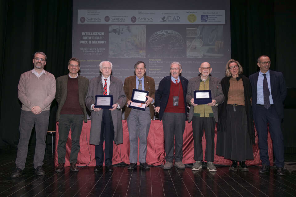 Autore della prefazione del libro, il Professore emerito di Sapienza e premio Nobel per la Fisica 2021 Giorgio Parisi, che poco prima era stato ricevuto da Papa Francesco in Vaticano per consegnare la “Dichiarazione sulla fraternità umana”, firmata da oltre 30 premi Nobel e organizzazioni internazionali attraversa il quale si chiede di perseguire la pace: “Negli ultimi 20 anni – ha detto Parisi – sempre più scarse sono state le azioni volte al perseguimento della pace. Ci eravamo forse illusi che la pace fosse qualcosa di acquisito, ma non è mai vero. Esistono problematiche per le quali bisogna studiare e prepararsi. E in questo libro si scopre la quantità di lavoro sotterraneo che esiste dietro questi argomenti. L’intelligenza artificiale è una scoperta che cambia le cose, che ha maggior potere sull’uomo, ma il compito della società è controllare questo potere. Un esempio? Pensiamo alla stampa e alla mole di regolamentazioni che ne determinano l’utilizzo, così nel caso dell’intelligenza artificiale è necessario l’avvio di una riflessione. Fondamentale nel caso di guerre, dove esiste un problema fondamentale che è morale”. Intervento che era stato anticipato dai saluti di Federico Ricci Tersenghi del Dipartimento di Fisica e di Marco Benvenuti, Direttore Centro Sapienza Crea – Nuovo Teatro Ateneo