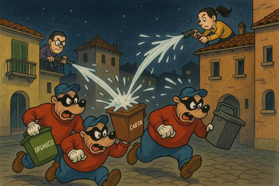 Siamo commossi dal livello di priorità amministrativa: a Frascati sparisce tutto – alberi, parcheggi, senso logico – ma per fortuna si combattono i furti di bidoni come se si trattasse dell’oro di Salomone.