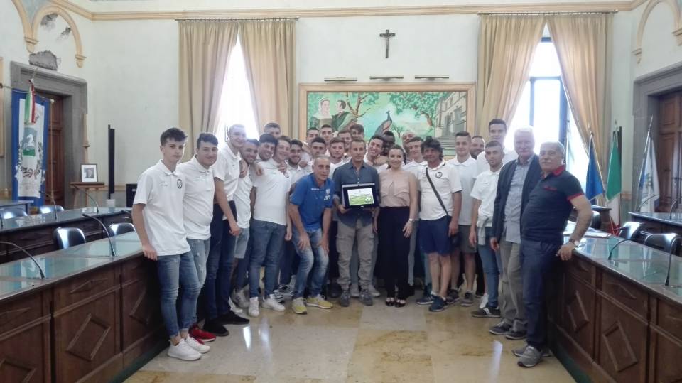 A riceverli il Vice Sindaco con delega allo Sport Paola Tiberi che ha rivolto loro parole di elogio e ringraziamento: “E’ veramente un onore avervi qui. Io ho profonda ammirazione per voi perché so il sacrificio che c’è dietro una preparazione di una gara, perché è un sacrificio sia mentale che fisico., sacrificio che non è solamente vostro ma anche delle vostre famiglie che vi supportano accompagnandovi agli allenamenti e anche dei vostri dirigenti, perché c’è il sacrificio del mister, di tutta la squadra che si compone della dirigenza che vedo e avverto sempre come una grande famiglia. Mi date veramente buone buone sensazioni. Vi faccio i complimenti anche da parte del Sindaco che non è potuto essere presente. Auguri per i vostri esami. So che molti di voi si stanno preparando per la maturità. Mi raccomando anche per il prossimo anno: Vi aspettiamo qui”.