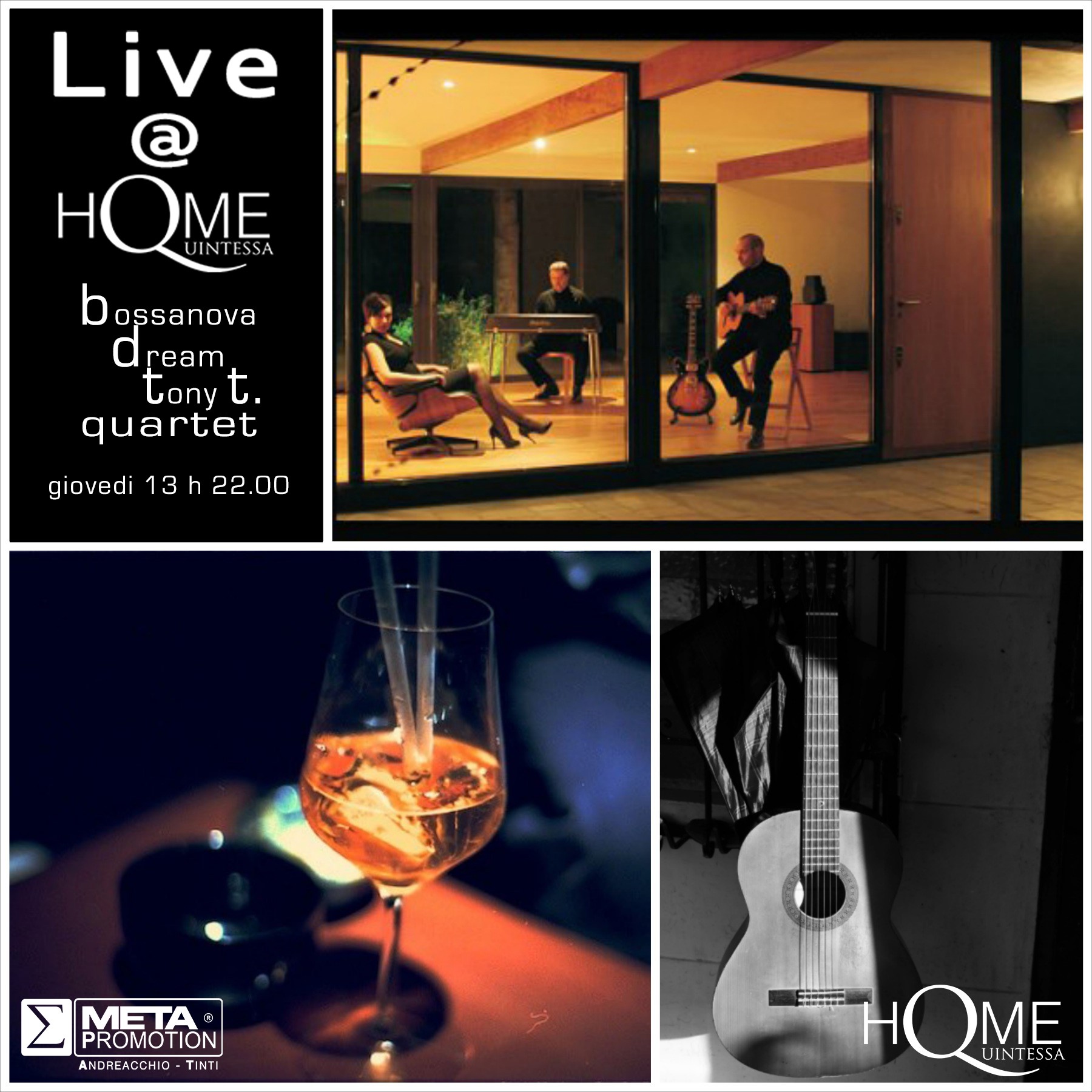 APPUNTAMENTI – Continuano sempre nuovi gli appuntamenti con Quintessa Home e Meta Promotion sulle rive del Lago Albano. Live@home è il progetto che vede coinvolti quintessa home nella figura di Gabriele Cerci e Meta Promotion di Massimiliano Andreacchio ed Emanuele Tinti. L’idea è quella di arricchire la proposta di quintessa con un appuntamento nuovo di Giovedi dedicato alla musica Live. Si spazierà dal soul al blues al swing: questa settimana è dedicata alla bossanova con il gruppo Tony t e quartet. Abbiamo chiesto proprio a Massimiliano Andreacchio di raccontarci il senso di questo nuovo e imperdibile appuntamento.