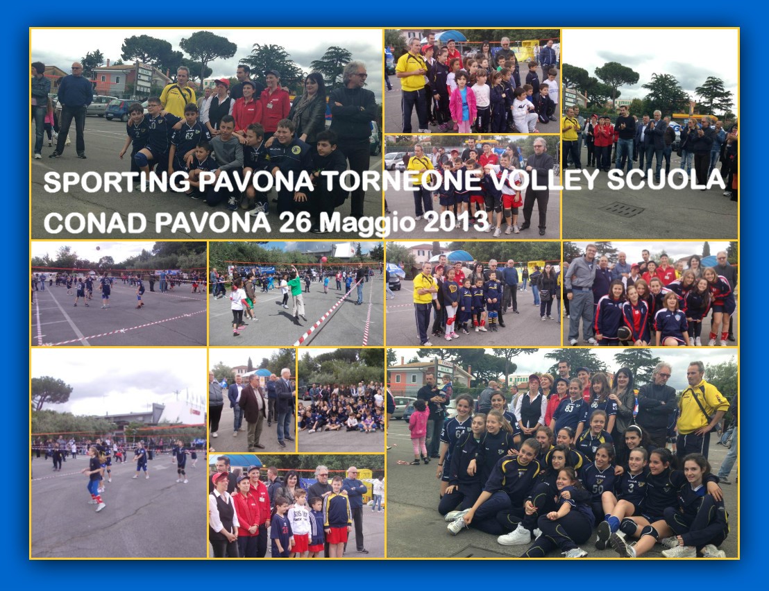Sporting Pavona, CONAD Supermercati Pavona- Albano Laziale e Graphos SAS, hanno organizzato il grande evento “Volley Insieme per la Scuola 2013” che si è svolto nelle giornate di Sabato 25 e Domenica 26 Maggio presso il Piazzale Conad di Pavona.