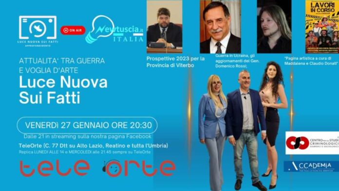 giornalista viterbese Gaetano Alaimo. Il 27 gennaio alle 20.30 su TeleOrte (C. 77 Dtt visibile su tutta l’Umbria, Alto Lazio e provincia di Rieti) ed in streaming sulla pagina di Luce Nuova sui fatti di facebook e sul circuito LSFN sarà in onda il format settimanale più seguito dell’Alto Lazio e tra i più seguiti del Centro Italia.