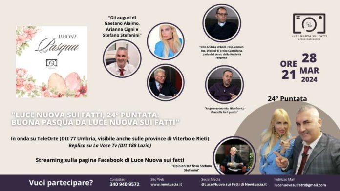 Scatta la ventiquattresima puntata ufficiale della quarta edizione di “Luce Nuova sui fatti”. Giovedì 28 marzo alle 21, su TeleOrte (Dtt 77 Umbria, visibile anche nelle province di Viterbo e Rieti) e su La Voce Tv (Dtt 188 Lazio) e sulla pagina https://www.facebook.com/lucenuovasuifatti?locale=it_IT e sul circuito LNSF