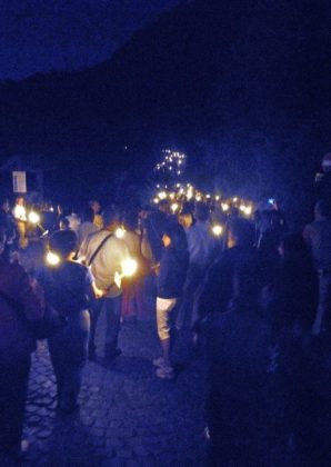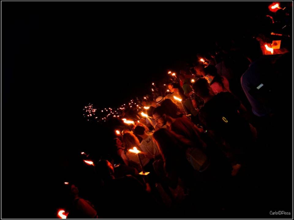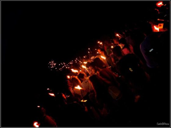 Magica fiaccolata sotto le stelle cadenti a picco sul Lago