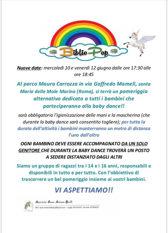 “Marino. A BiblioPop: BabyDance, e nuovi arrivi librari di qualità. Poi, dopo successo Festa Repubblica, attivata ArenaBiblioPop.