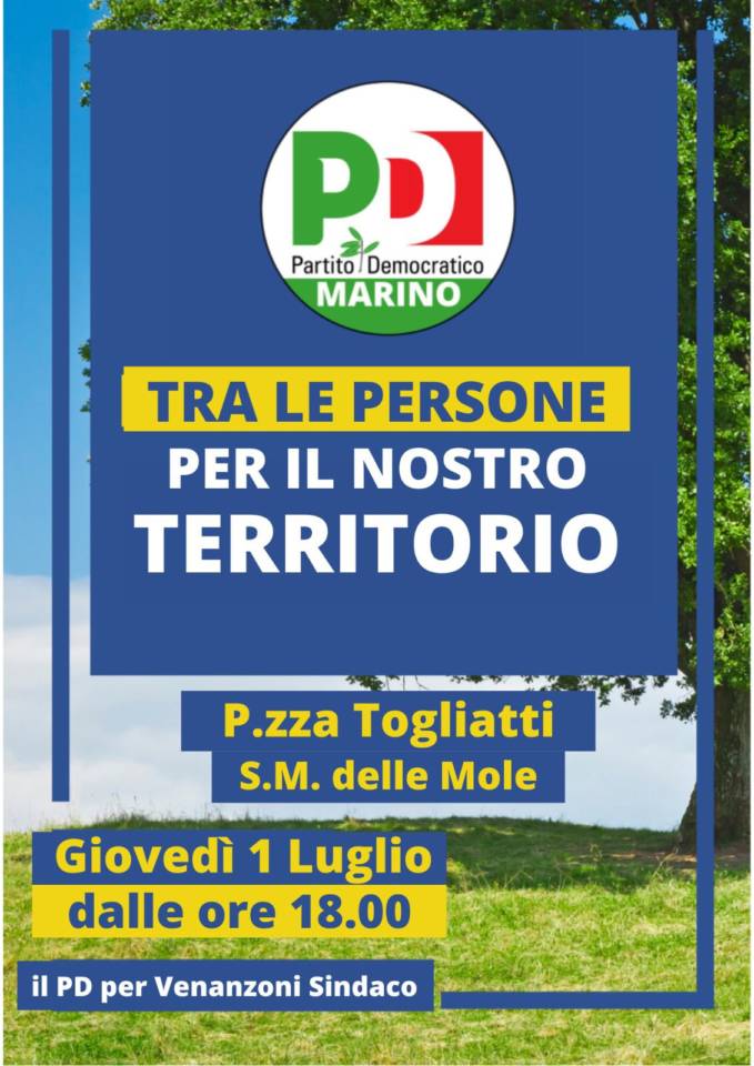“Nella visione del Partito Democratico di Marino la sostenibilità ambientale e la rigenerazione urbana sono strumenti fondamentali a disposizione dei comuni al fine di migliorare la vivibilità e il decoro della città, della periferia e della qualità di vita dei cittadini, impedendo e contrastando il continuo consumo di suolo. Di questi principi di buon governo ne parleremo il prossimo giovedì Primo Luglio, in piazza Togliatti a Santa Maria delle Mole, a partire dalle ore 18, insieme al candidato sindaco di Marino Gianfranco Venanzoni. A nostro giudizio, infatti, le prossime elezioni amministrative di ottobre decideranno le sorti delle nuove generazioni e del nostro comune”.