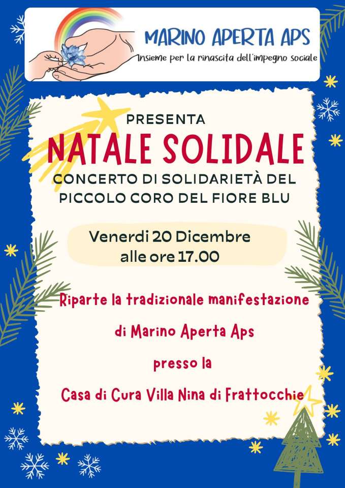 Dopo il periodo pandemico e un lento, ma deciso, riavvio di tutte le attività in questi anni dopo il 2022, finalmente da questo Natale 2024 si sono ripresentate le condizioni per riproporre il tradizionale incontro organizzato da Marino Aperta APS con gli anziani e gli ammalati della Casa di Cura Villa Nina. Il Piccolo Coro del Fiore Blu, infatti, presenterà un concerto di solidarietà dedicato al Natale il 20 dicembre alle ore 17. I piccoli cantori dai 3 ai 12 anni del Piccolo Coro allieteranno così l’attesa del Natale nella sala del piano terra della struttura, in un momento conviviale e di solidarietà.