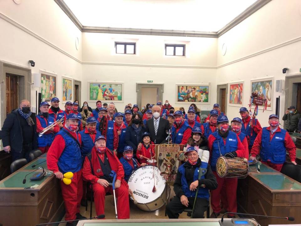 Dopo aver sfilato festosamente per le vie del centro storico la Società di divertimento VOLEMOSE BENE è arrivata a palazzo Colonna dove è stata accolta dal Sindaco Stefano Cecchi e dalla Giunta Comunale.