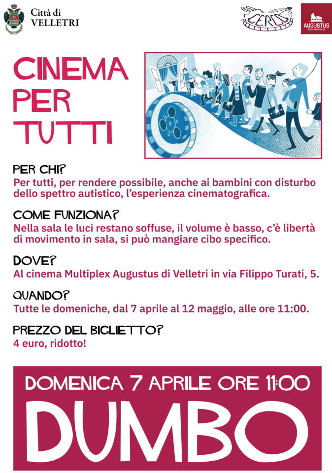 La Soc. Coop. CE.R.CO in collaborazione con il Cinema Multiplex Augustus di Velletri e il patrocinio del Comune di Velletri promuove in occasione del 2 aprile “Giornata mondiale per la consapevolezza sull’autismo” l’iniziativa “CINEMA PER TUTTI”.