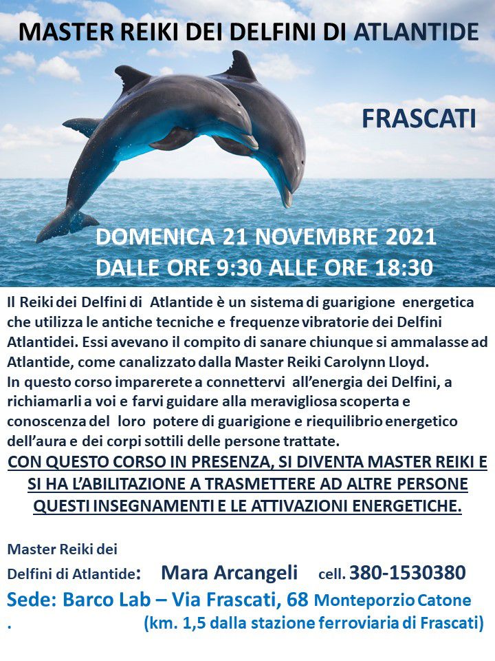 Cultura e spettacoloFrascatiAltri CastelliMonteporzio CatoneUltim'Ora Master Reiki dei Delfini di Atlantide a Monte Porzio Catone Appuntamento domenica 21 novembre dalle 9:30 alle 18:30 presso la sede del Barco Lab Da La Redazione - 16 Novembre 2021 0 730 FacebookTwitterPinterestWhatsApp Appuntamento domenica 21 novembre dalle 9:30 alle 18:30 presso la sede del Barco Lab Download PDF