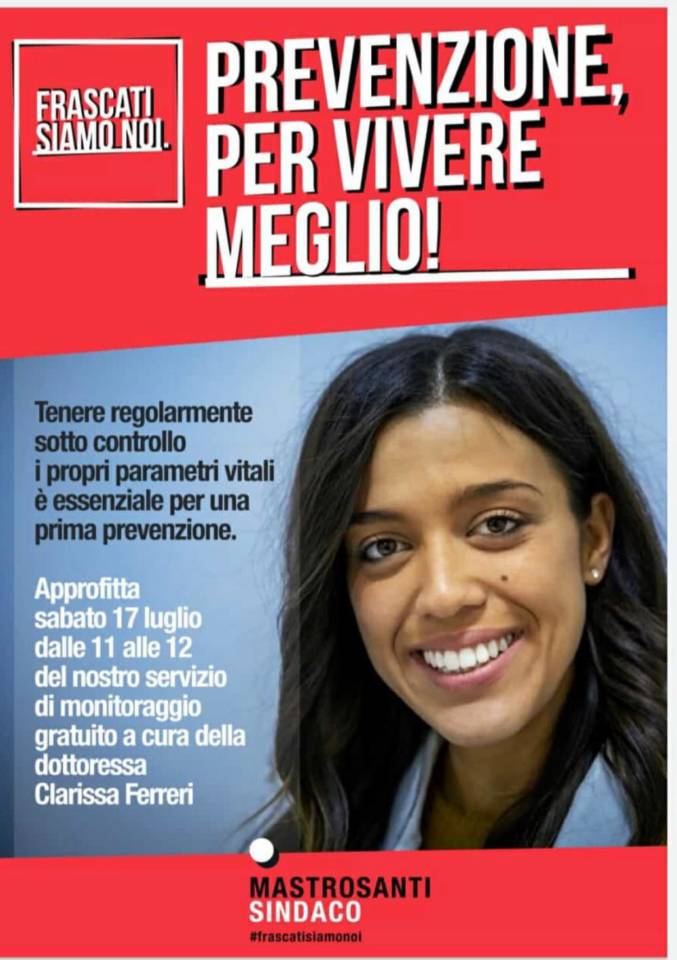 Dalle 11 alle 12 la dottoressa Clarissa Ferreri offrirà la possibilità di effettuare un monitoraggio dei propri parametri vitali. “Prevenzione per vivere meglio” così gli organizzatori lanciano questo momento legato alla prevenzione dell’iniziativa elettorale sullo sport della coalizione che sostiene la ricandidatura a sindaco dell’Avvocato Roberto Mastrosanti.