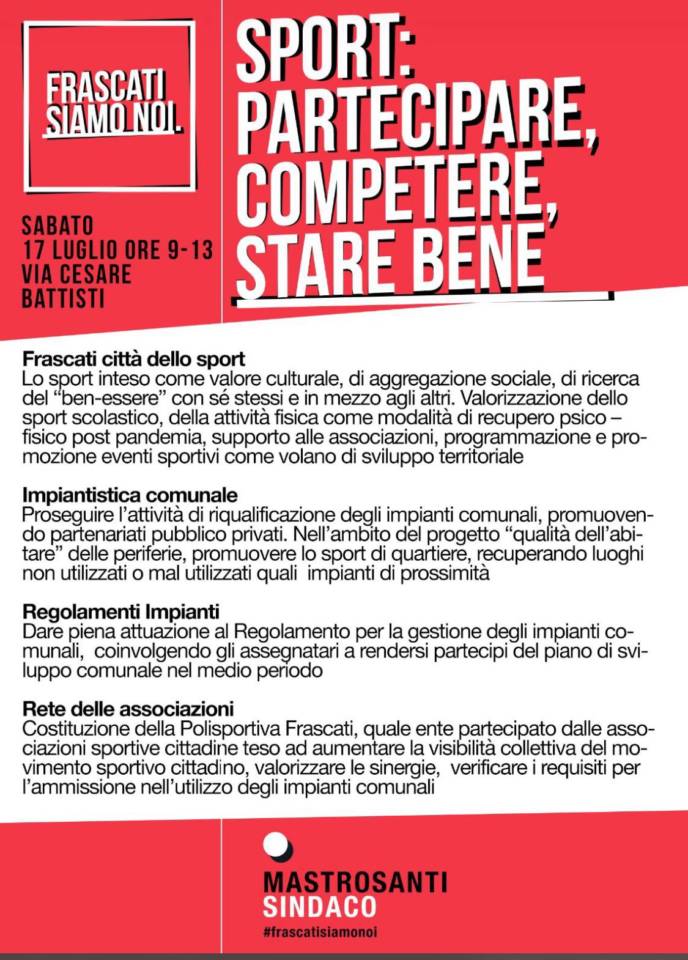 Frascati siamo noi, presenta sabato 17 luglio a via Cesare Battisti dalle 9 alle 13 un nuovo appuntamento di confronto con i cittadini tuscolani.