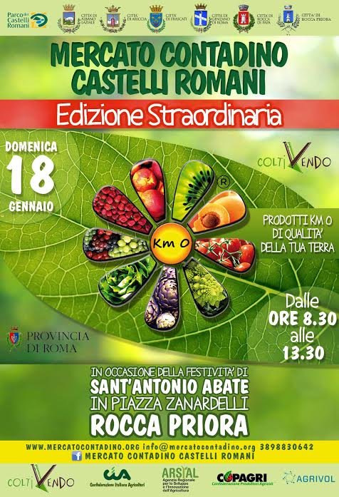 Domenica 18 gennaio 2015 il Mercato Contadino Castelli Romani sbarca a Rocca Priora e vi porterà delle ottime mozzarelle di bufala, formaggi genuini di pecora e mucca, pane fragrante di Lariano e di Veroli lievitato naturalmente con lievito madre, frutta e verdura appena raccolta, miele biologico e birre artigianali …tutti prodotti del nostro territorio per sostenere la filiera corta, le piccole aziende a conduzione familiare, il cibo di qualità.