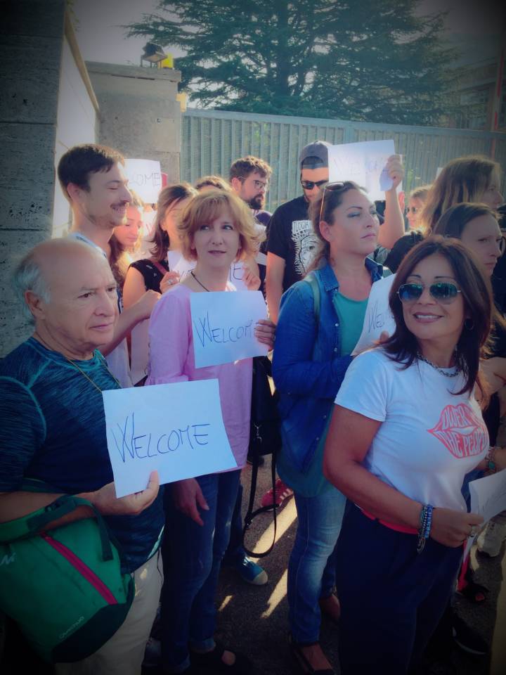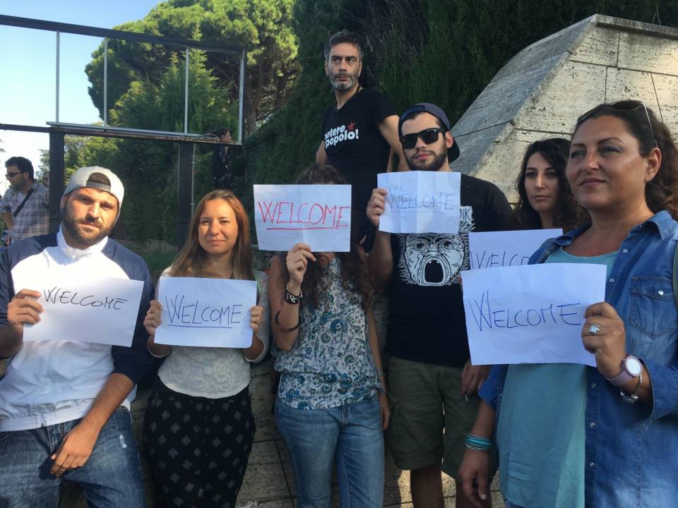 “Ci sono storie che iniziano lontano, in Africa precisamente, e parlano di guerre, fame, carestie, sete, viaggi in mezzo al deserto e poi per mare, stipati su mezzi di fortuna da scafisti/schiavisti. Raccontano di un rimpallo politico che ti costringe per giorni fermo in un porto e poi per ore su un pullman fino alle porte di Roma dove, forse profeticamente, ad attenderti c’è un cartello che parla di un “Mondo Migliore”. Questo è quello che hanno vissuto 100 dei profughi della Diciotti, ospiti temporanei del centro di Rocca di Papa dopo l’accordo tra la CEI e il Ministro degli Interni. Ad accoglierli ieri sera, 28 agosto, con sorrisi festosi e cartelli con la scritta WELCOME, cittadini dei Castelli Romani, militanti di associazioni e partiti politici e residenti che, in modo spontaneo si sono organizzati una volta saputo dell’arrivo dei migranti. Alcune ore dopo sono arrivati sul luogo un piccolo gruppo di militanti di centro destra, che hanno alzato cori razzisti sventolando il tricolore. Il presidio di accoglienza in solidarietà ai migranti continuerà anche nella giornata di oggi”.