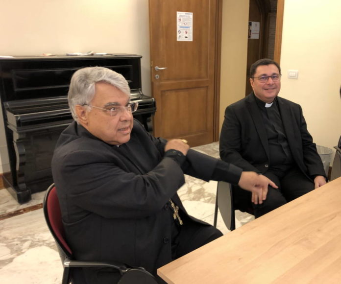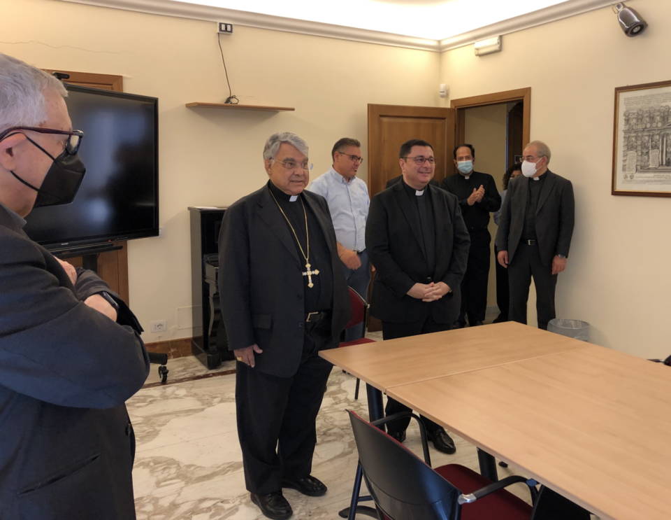 Poco prima dell’incontro informale in Cattedrale con i sacerdoti, il vescovo eletto Vincenzo Viva era stato accolto dal cardinale Marcello Semeraro all’interno della curia diocesana per un incontro con i direttori, i collaboratori e i dipendenti degli uffici, per un primo momento di conoscenza, familiare e cordiale”. Lo rende noto la Diocesi di Albano Laziale.